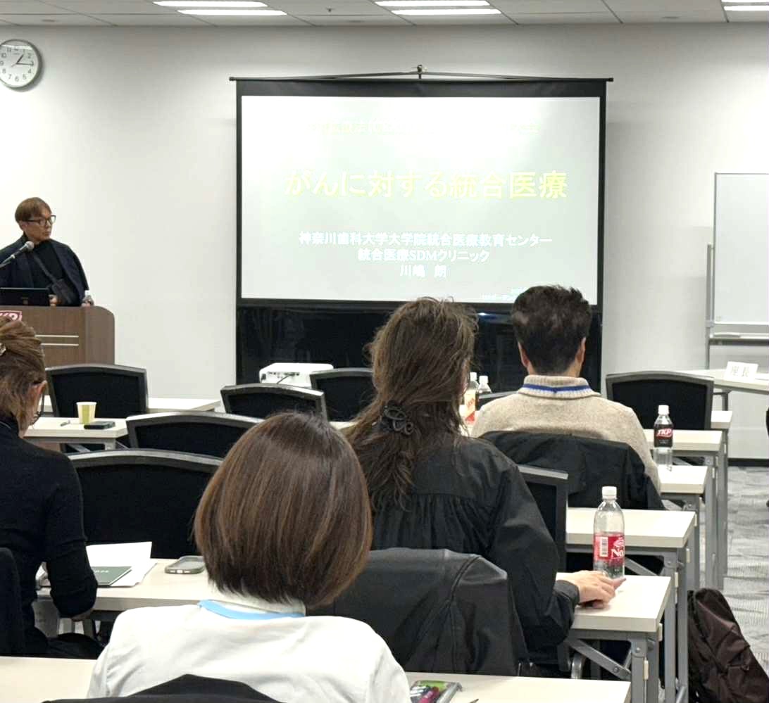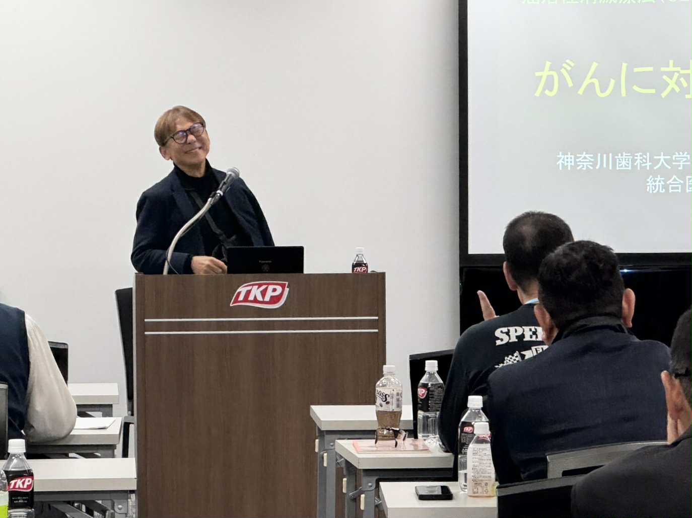 今回の特別招待講演では、神奈川歯科大学大学院 統合医療教育センター 特任教授の川嶋朗先生が「がんに対する統合医療」というテーマでお話しくださいました。会員の医師と参加していた各施設の看護師やスタッフの皆さんも、大変興味深く聞き入っていた様子で、川嶋先生のわかりやすくて温かいご講演に会場は素晴らしい一体感に包まれました。